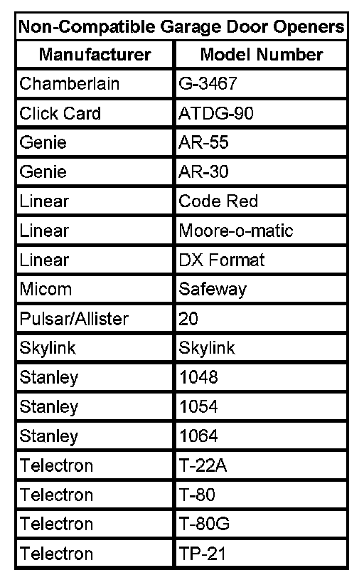 Important: Do not use the garage door opener (GDO) with any garage door opener that does not have the stop and reverse safety feature. This includes any garage door opener model manufactured before April 1, 1982.