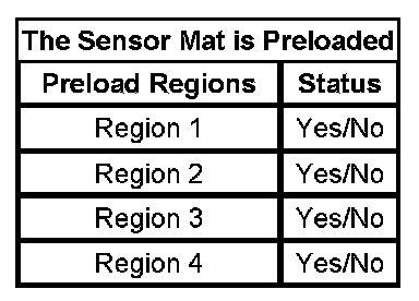 The PPS will fail the preload test when a region has detected a preload/pressure on it. If a preload test fails, the scan tool will display a chart as illustrated below. A Yes status indicates which region(s) have a preload condition. Refer to the chart below and the above illustration to identify the failed region.