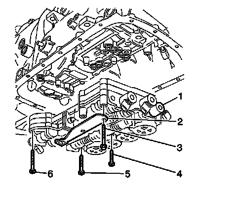 6. Install the control valve body accumulator assembly to the transmission case bolts (1-3) and hand tighten.
