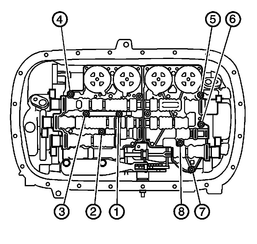 7. Tighten the control valve body assembly bolts in sequence.