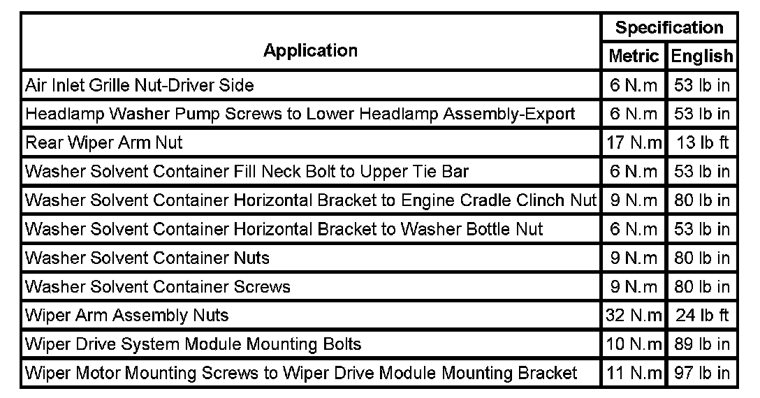 Wiper and Washer Systems: Specifications