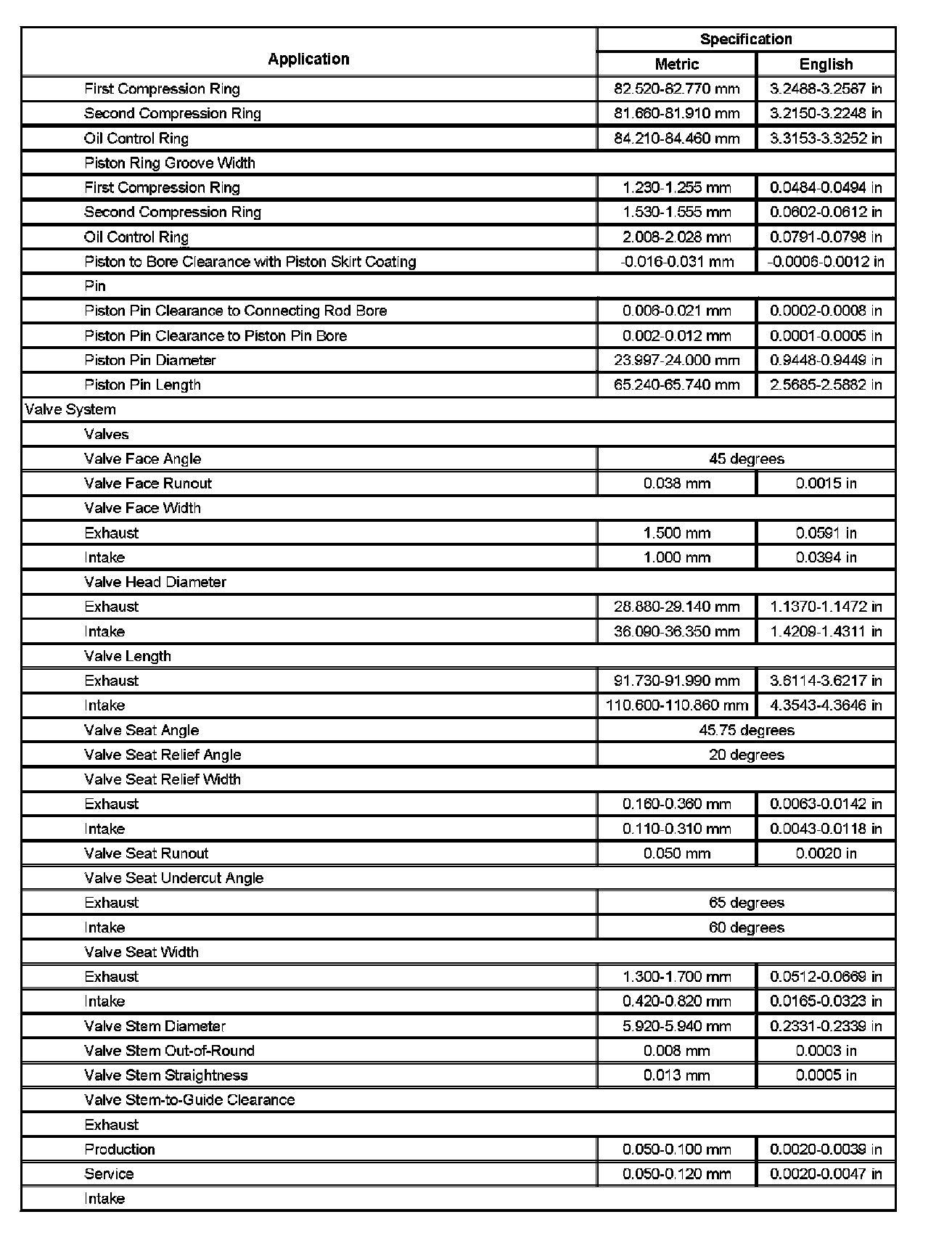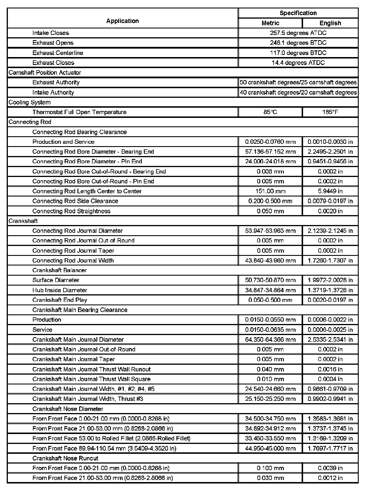Engine Mechanical SpecificationsEngine Mechanical Specifications (Part 1):
