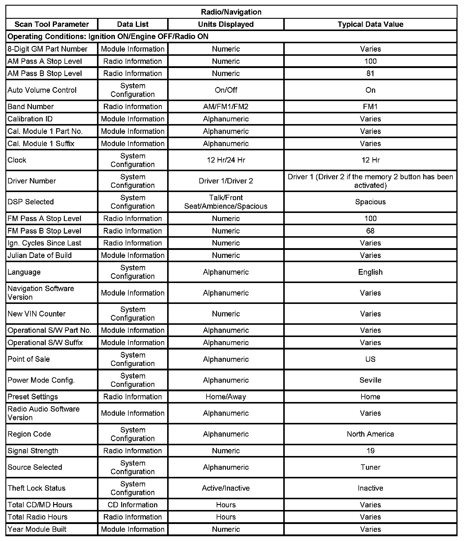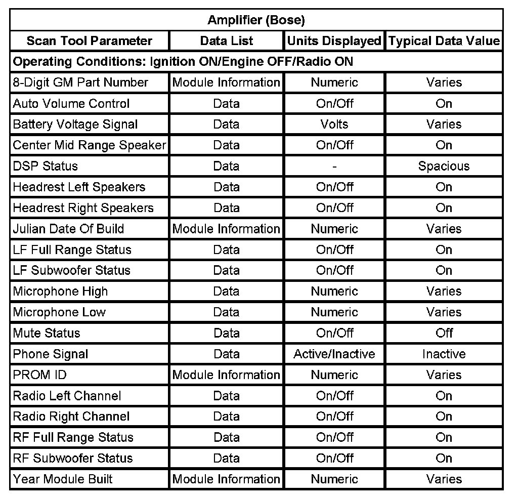 Scan Tool Data List