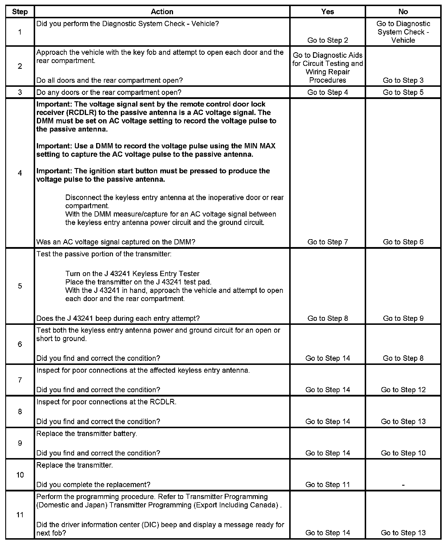 Keyless Entry System Inoperative (Passive)