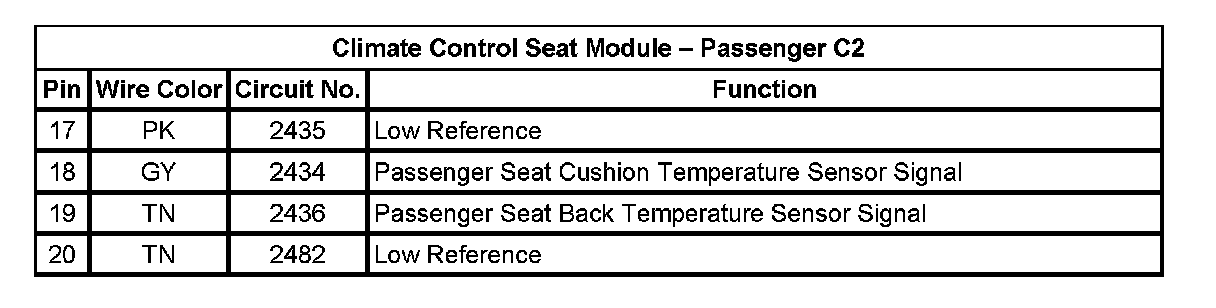 Climate Control Seat Module - Passenger C2 (Pin 17 To 20):
