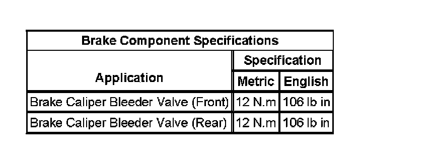 Brake Component Specifications: