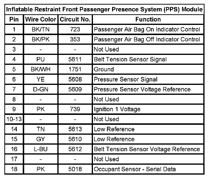 Inflatable Restraint Front Passenger Presence System (PPS) Module