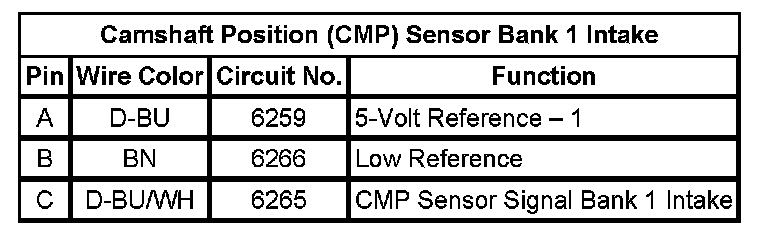 Camshaft Position (CMP) Sensor Bank 1 Intake