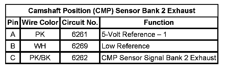 Camshaft Position (CMP) Sensor Bank 2 Exhaust
