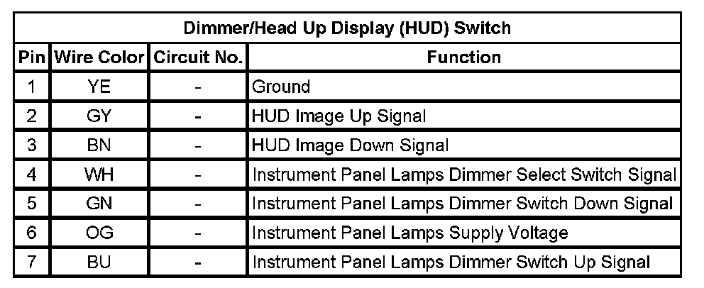 Dimmer/Head Up Display (HUD) Switch