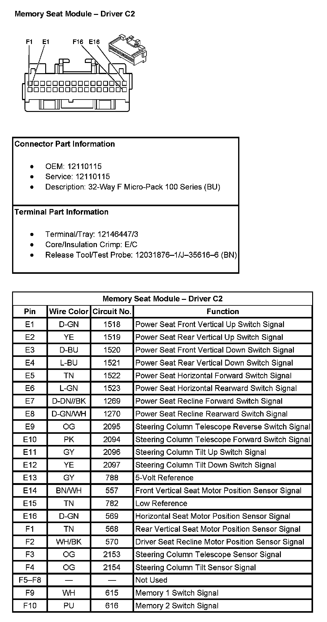 Memory Seat Module - Driver C2 (Pin E1 To F10):