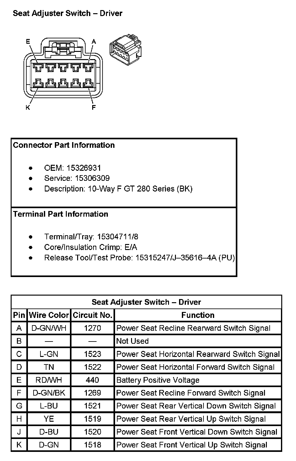 Seat Adjuster Switch - Driver: