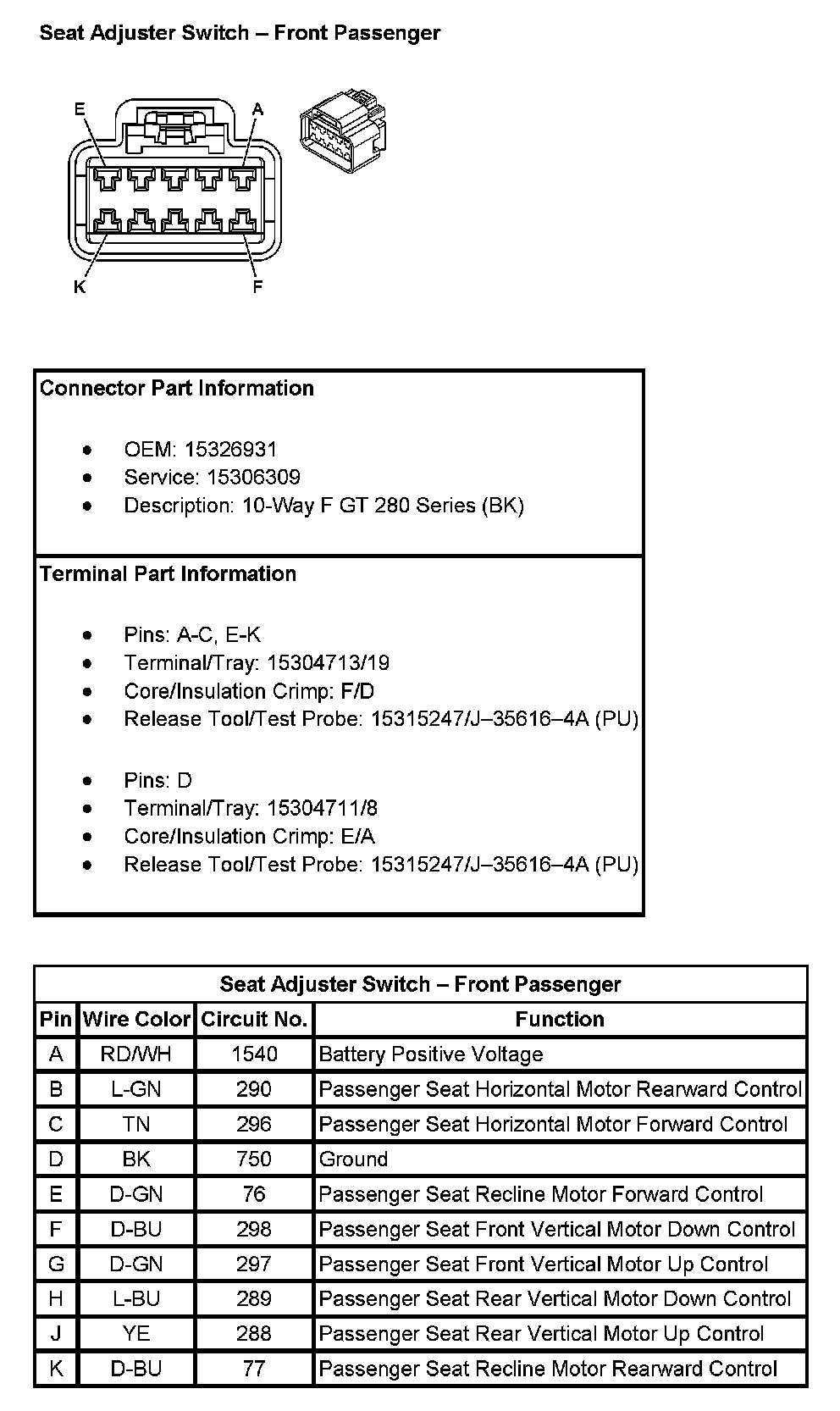 Seat Adjuster Switch - Front Passenger:
