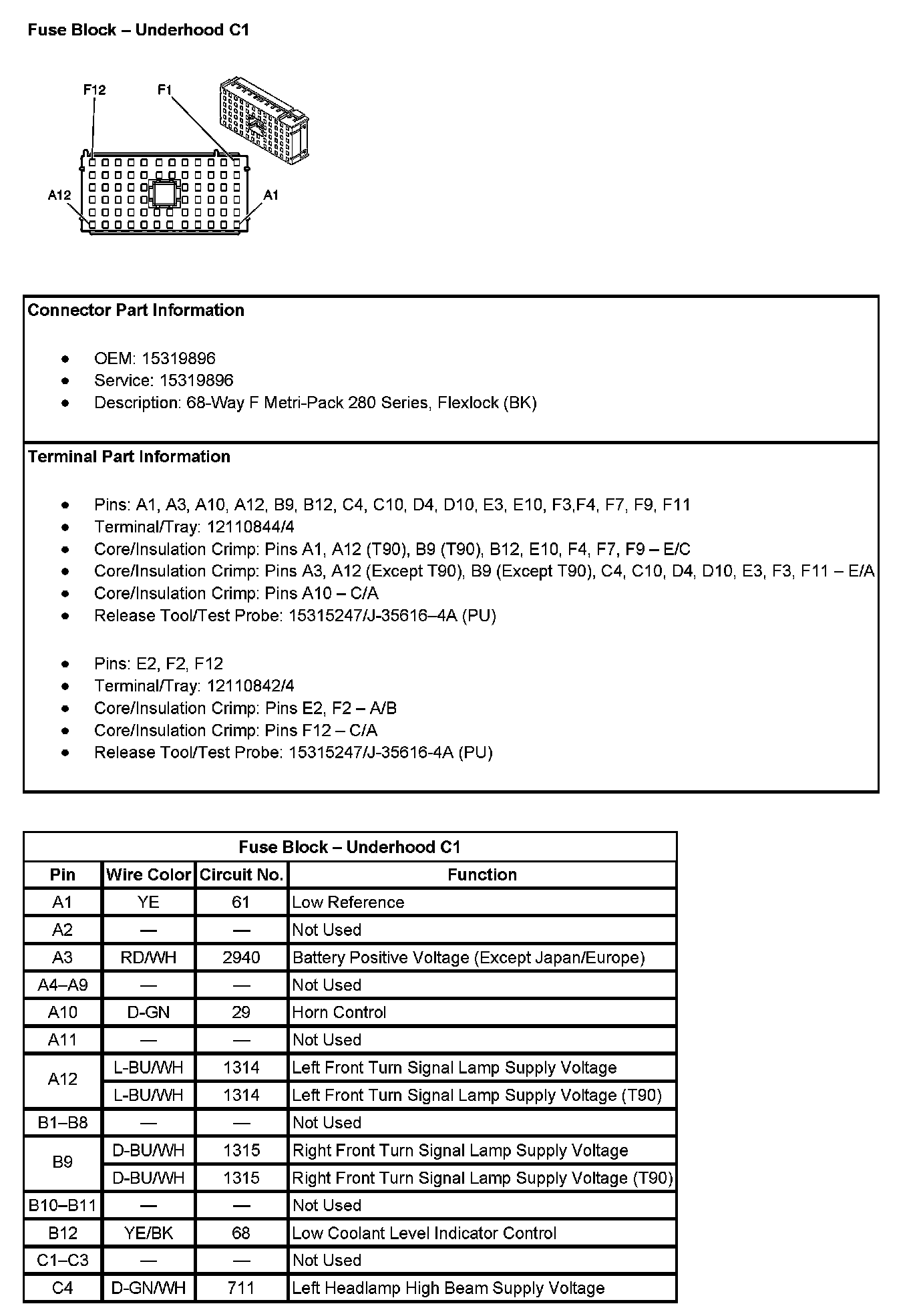 Fuse Block - Underhood C1 (Pin A1 To C4):