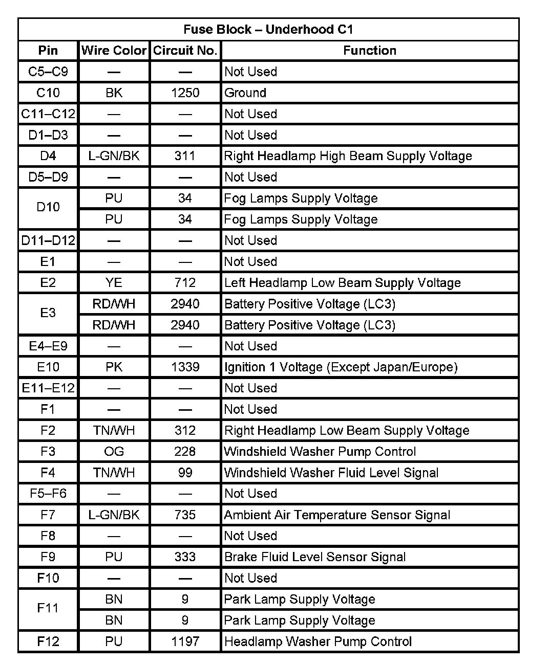 Fuse Block - Underhood C1 (Pin C5 To F12):