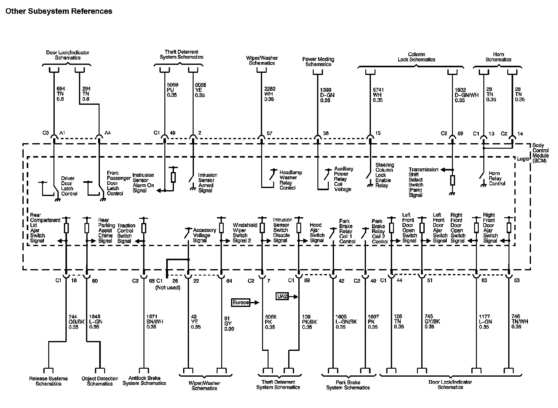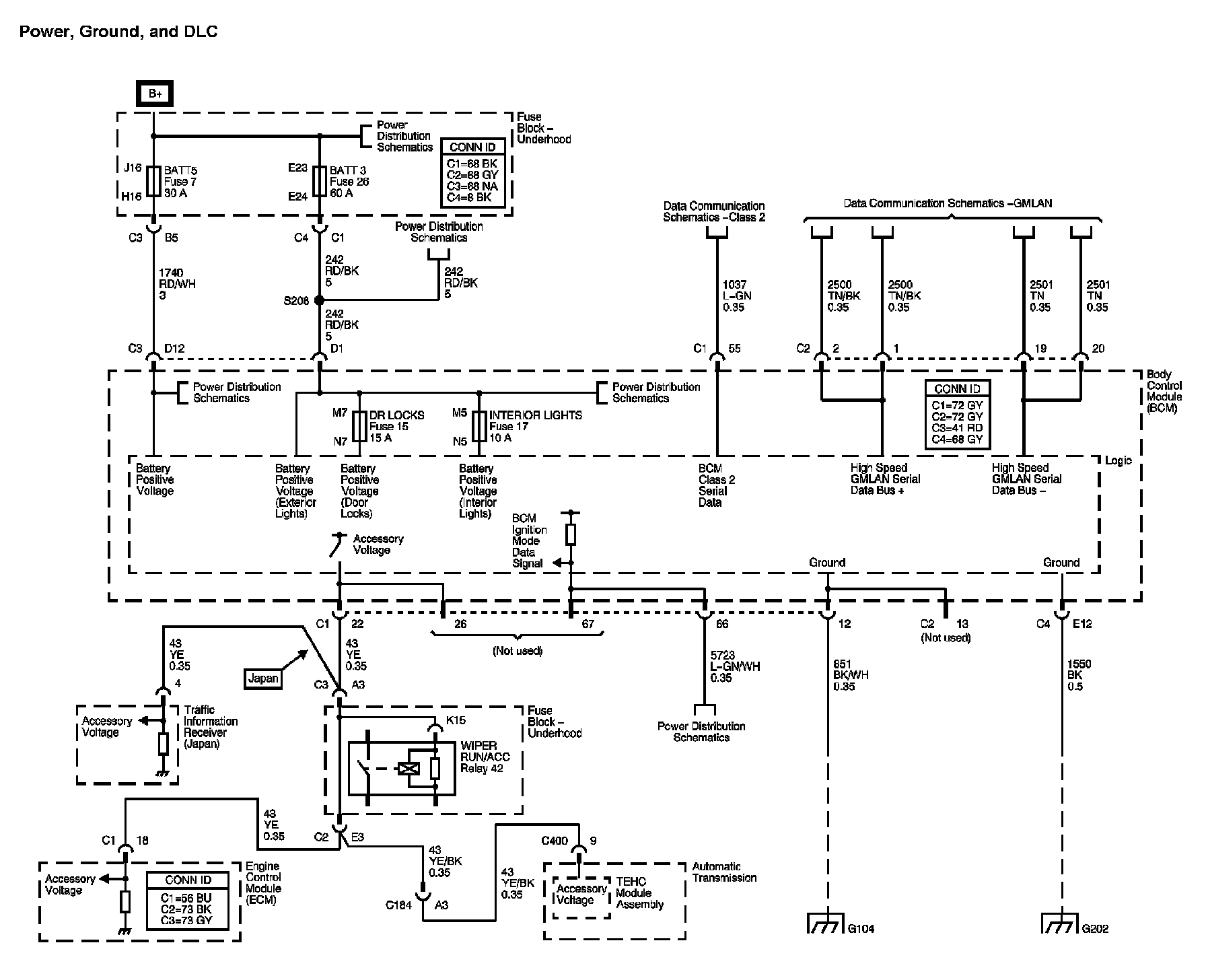 Locations: The locations for the Connectors, Grounds, Splices, and Grommets shown within these diagrams can be found via their numbers at Vehicle Locations. Locations