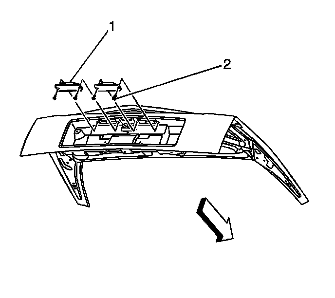 2. Remove the screws (2) attaching the license lamp (1) to the rear compartment lid.
