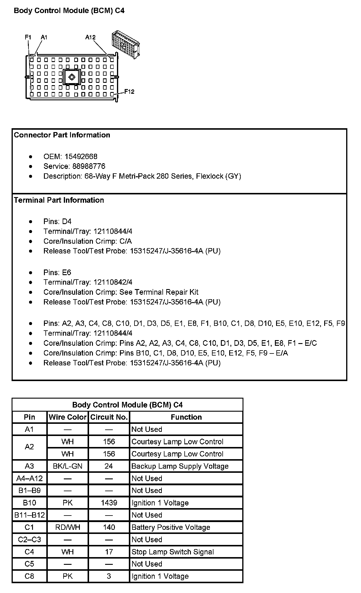 Body Control Module (BCM) C4 (Pin A1 To C8):