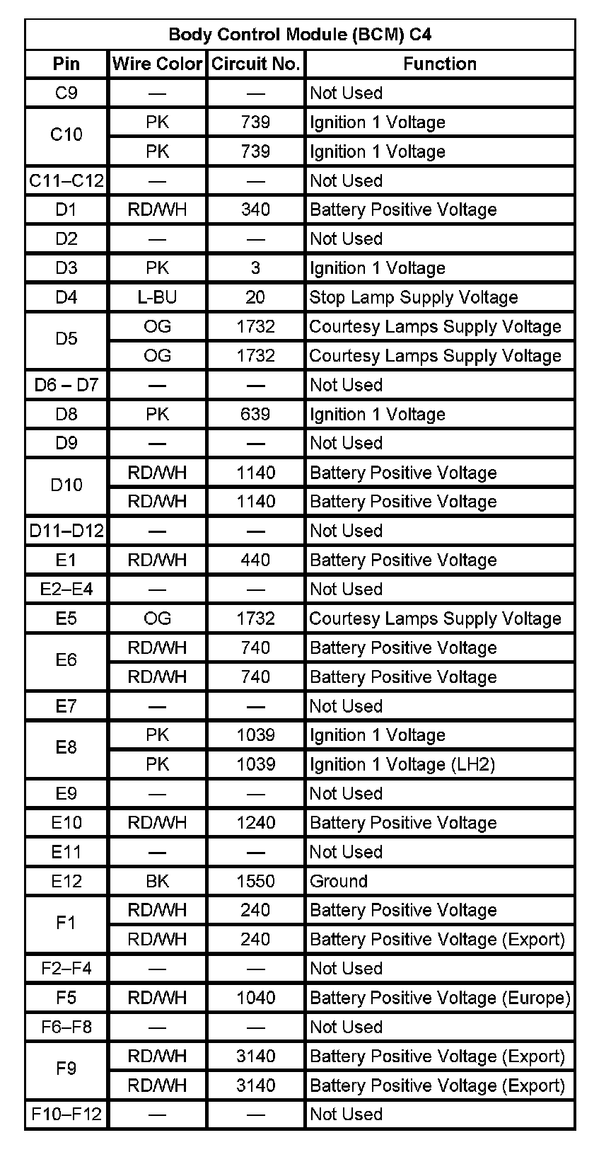 Body Control Module (BCM) C4 (Pin C9 To F12):