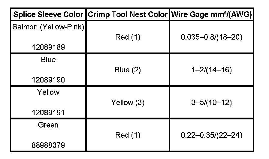 6. Select the proper DuraSeal splice sleeve according to the wire size. Refer to the above table at the beginning of the repair procedure for the color coding of the DuraSeal splice sleeves and the crimp tool nests.