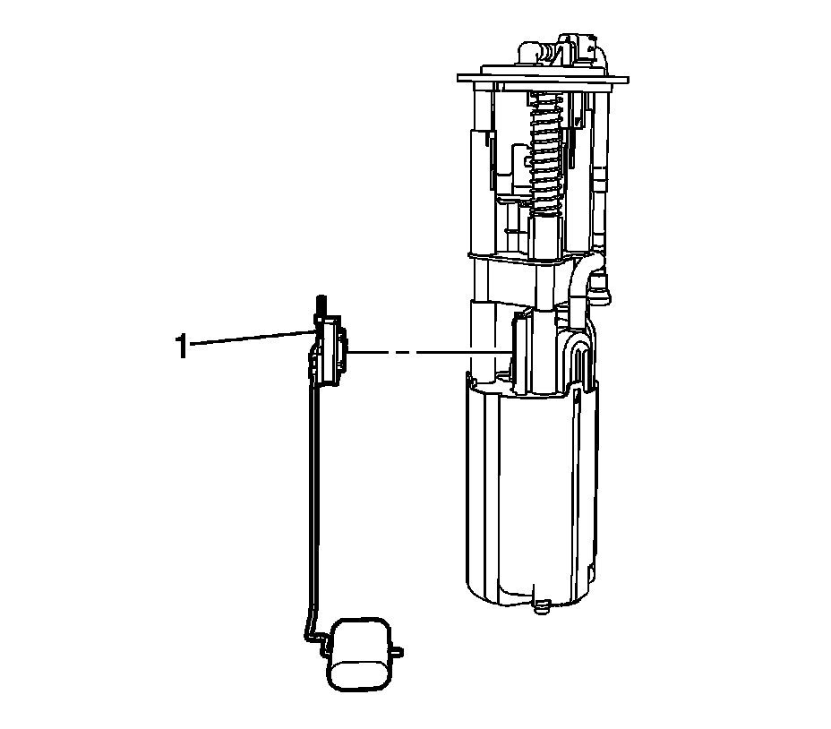2. Install the new level sensor (1) into the module by sliding it down until the lock tab clicks.