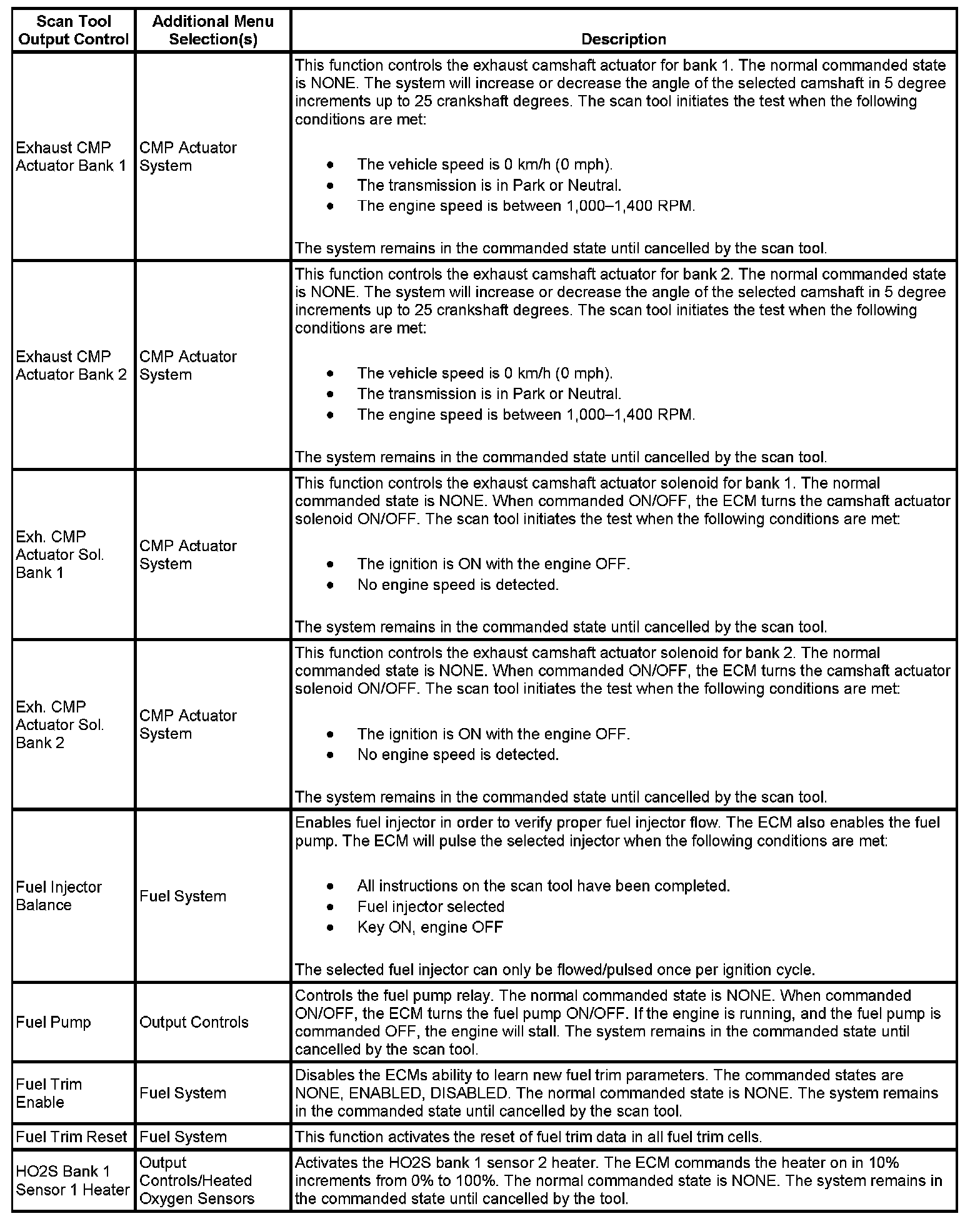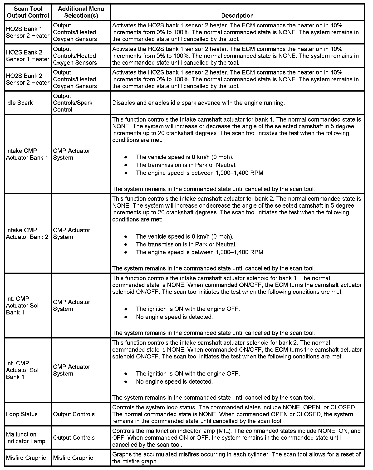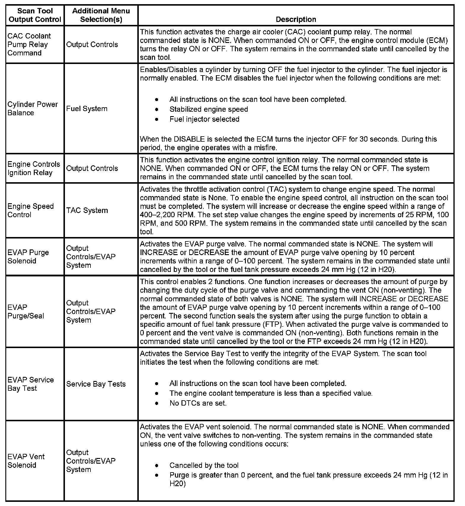 Scan Tool Output Controls
