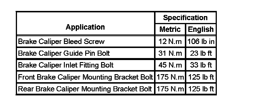 Fastener Tightening Specifications: