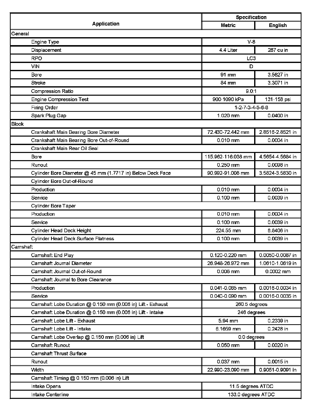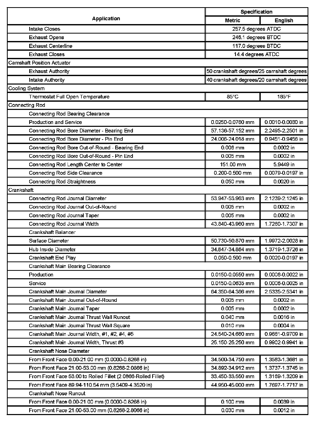 Engine Mechanical SpecificationsEngine Mechanical Specifications (Part 1):