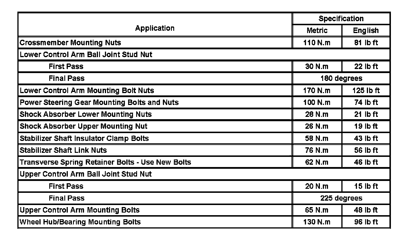 Fastener Tightening Specifications:
