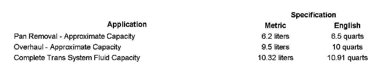 Fluid Capacity Specifications: