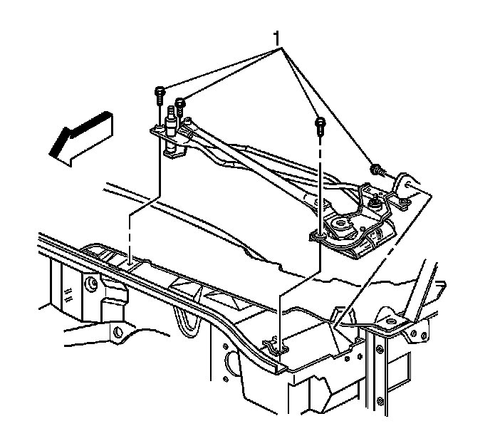 4. Remove the wiper drive system module from the plenum to gain access to the wiper motor electrical connector.