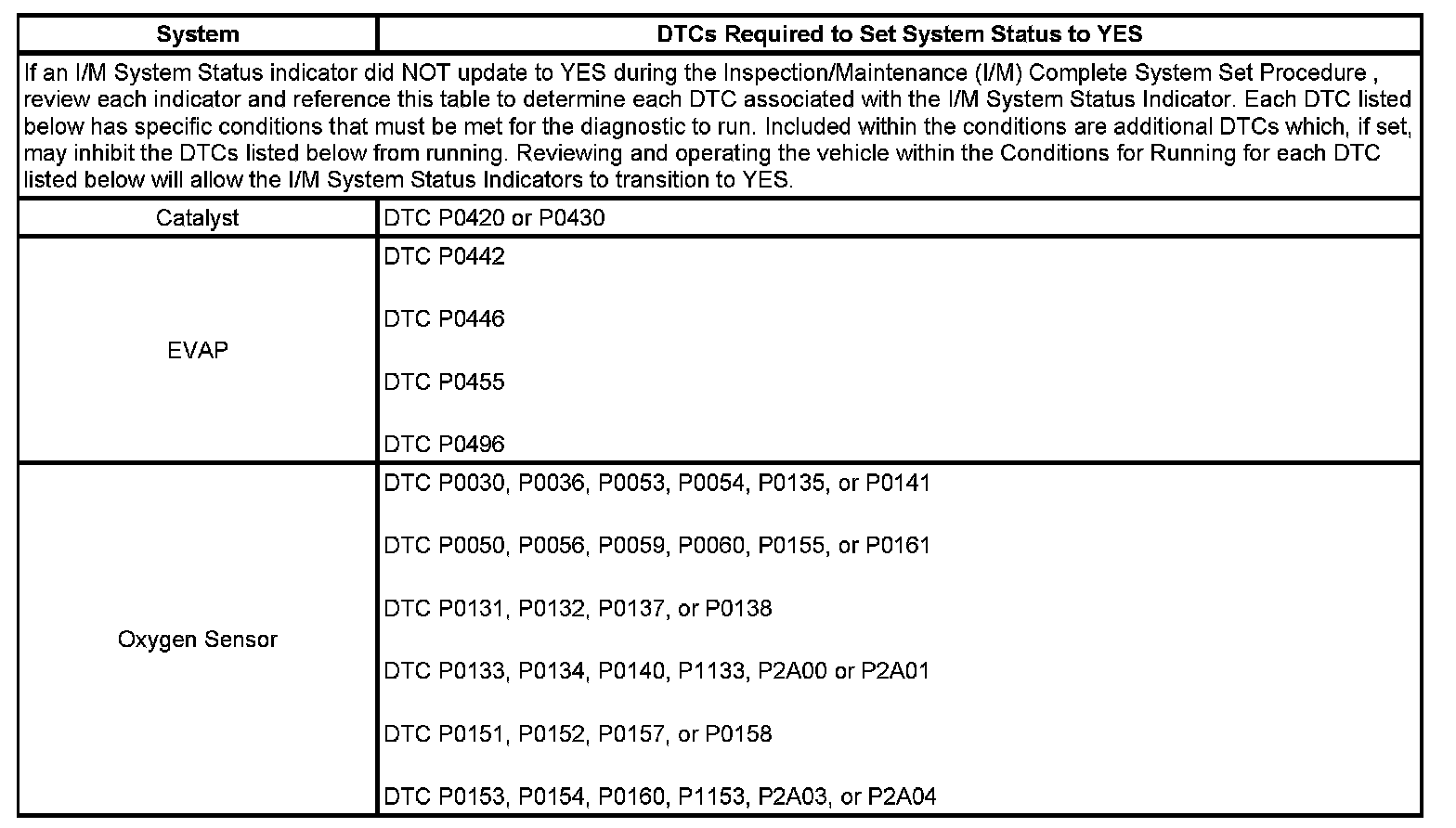 Inspection/Maintenance (I/M) System DTC TableDiagnostic Instructions *