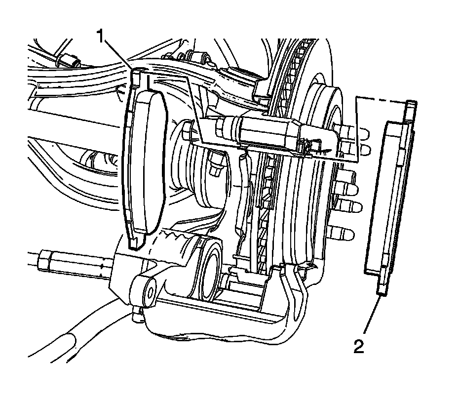 11. Remove the outer brake pad (2).