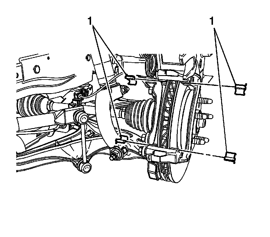 1. Inspect the brake caliper guide pins, seals and brake pad springs for damage and/or corrosion. Refer to Front Disc Brake Mounting and Hardware Inspection (Component Tests and General Diagnostics) .
