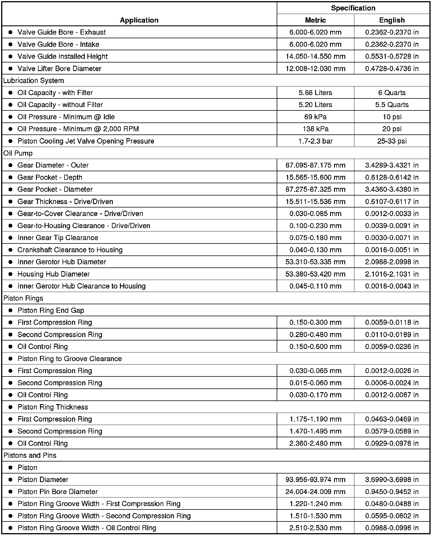 Engine Mechanical Specifications (RPO LLT VIN V)