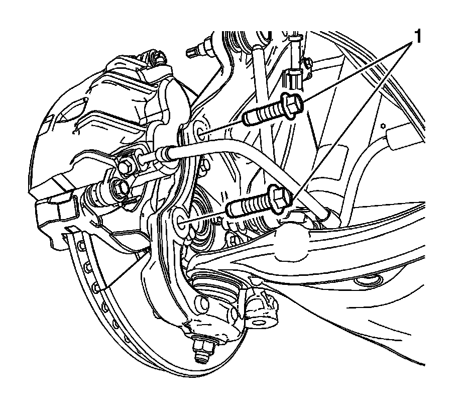 Important: If reusing the caliper bracket bolts the threads of the caliper bracket bolts and the threads of the knuckle mounting holes must be free of residue and debris prior to application of threadlocker in order to ensure proper adhesion and fastener retention.
