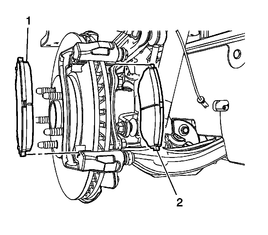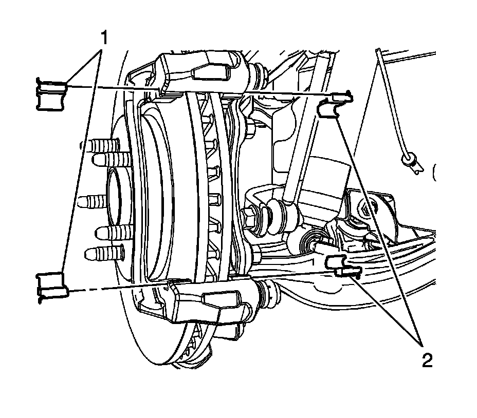 1. Inspect the brake caliper guide pins, seals and brake pad springs for damage and/or corrosion. Refer to Front Disc Brake Mounting and Hardware Inspection (Component Tests and General Diagnostics) .