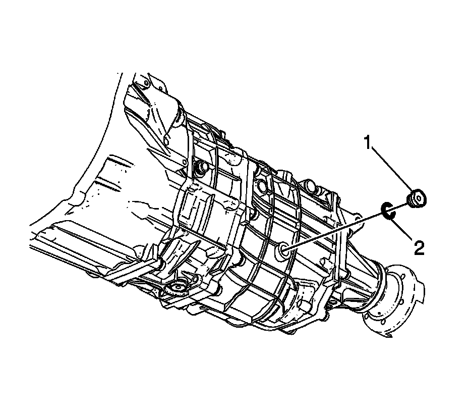 3. Remove the transmission fill plug (1) and washer (2) from the transmission.