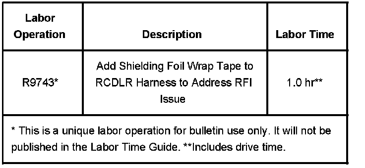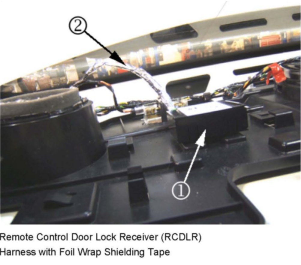 This condition may be caused by radio frequency interference (RFI) because some vehicles were produced with a section of the remote control door lock receiver (RCDLR) wire harness missing the foil wrap shielding tape.