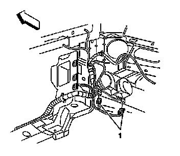 3. Disconnect the horn connectors (1) from the horns .