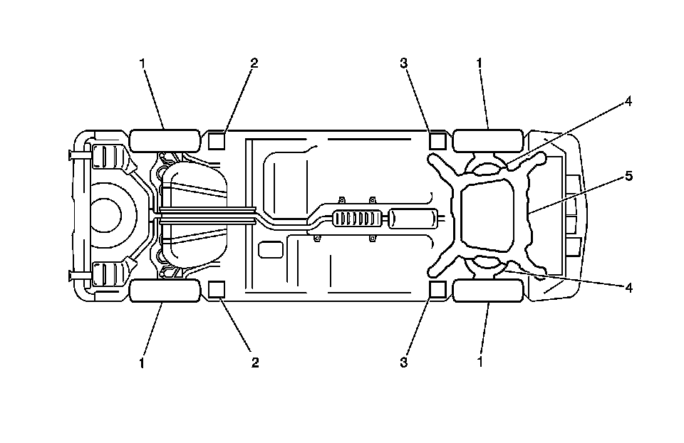 Caution: To avoid any vehicle damage, serious personal injury or death when major components are removed from the vehicle and the vehicle is supported by a hoist, support the vehicle with jack stands at the opposite end from which the components are being removed and strap the vehicle to the hoist.