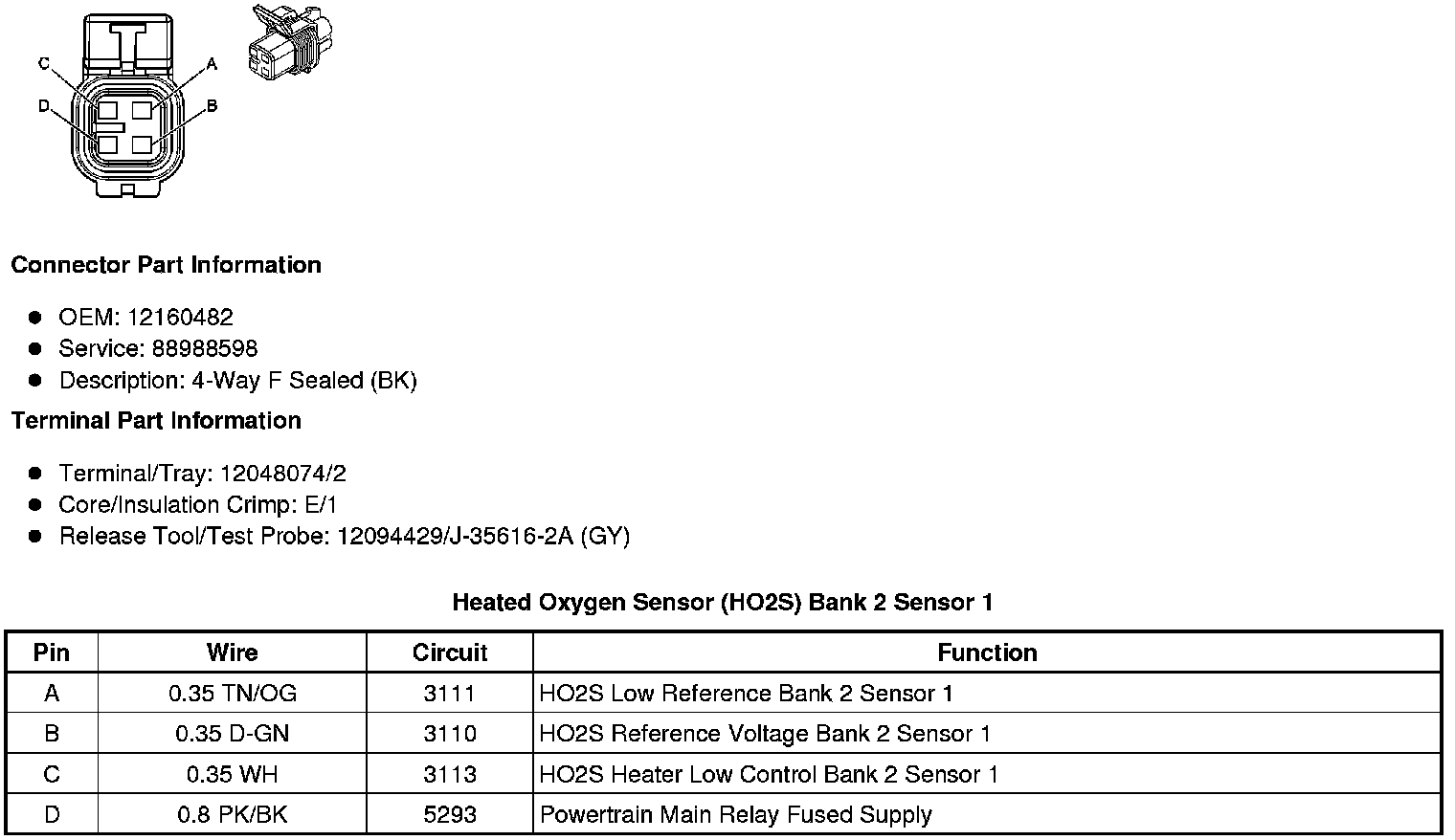 Heated Oxygen Sensor (HO2S) Bank 2 Sensor 1