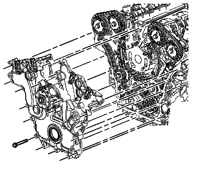 Important: There are a total of 22 M8 bolts that must be removed and 3 optional M12 bolts that may need to be removed before the front cover will separate from the engine block.