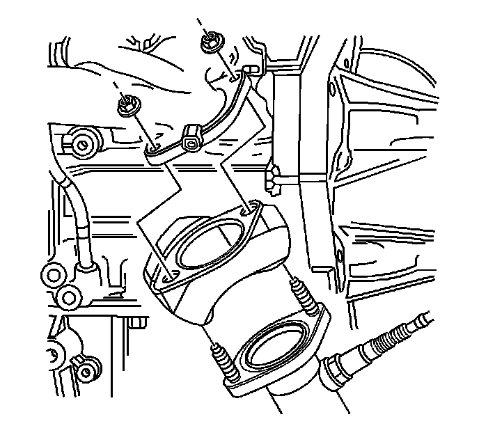 1. Remove the left bank exhaust manifold heat shield. Refer to Exhaust Manifold Heat Shield Replacement - Left Side (LY7 - Gas, 6 Cylinder, 3.6L, SFI, V6) (Exhaust Manifold Heat Shield Replacement - Left Side)Exhaust Manifold Heat Shield Replacement - Left Side (V8 w/LHD) (Exhaust Manifold Heat Shield Replacement - Left Side (V8 w/LHD)) .