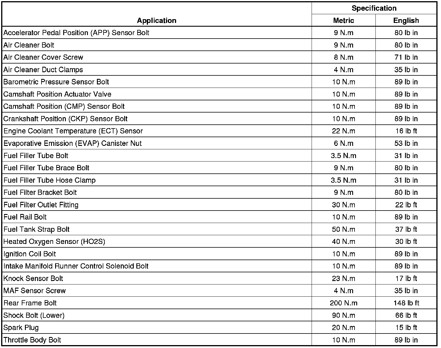Fastener Tightening Specifications