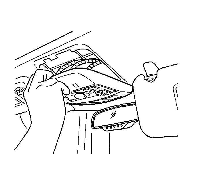 1. Remove the overhead console. Refer to Overhead Console Courtesy Lamp Replacement (Overhead Console Courtesy Lamp Replacement) .