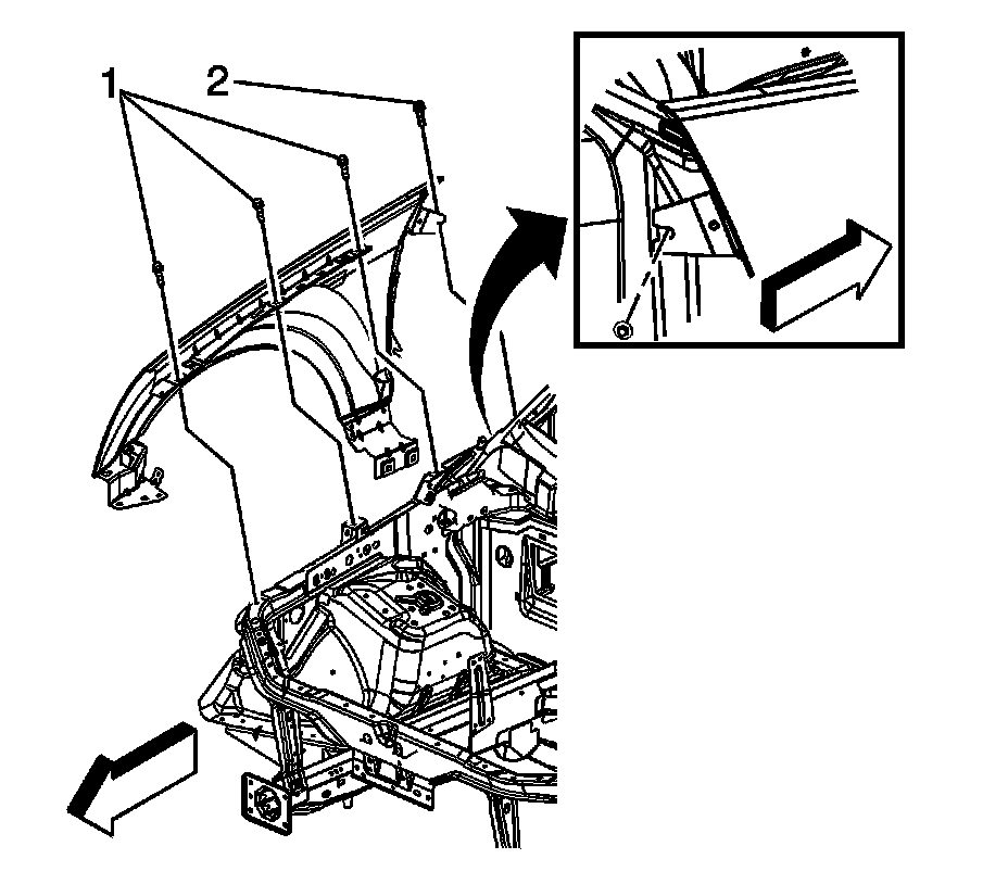 5. Remove the front wheelhouse liner. Refer to Wheelhouse Panel Replacement - Right Side (Service and Repair) and Wheelhouse Panel Replacement - Left Side (Service and Repair) .