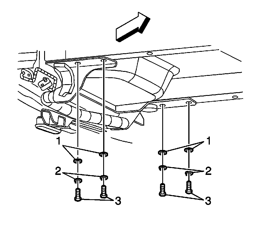 1.Remove the trailer hitch mounting bolts (3), lock washers (2), and flat washers (1).