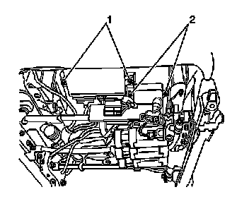 1. Install the heated seat control module and install the retaining screws (2).