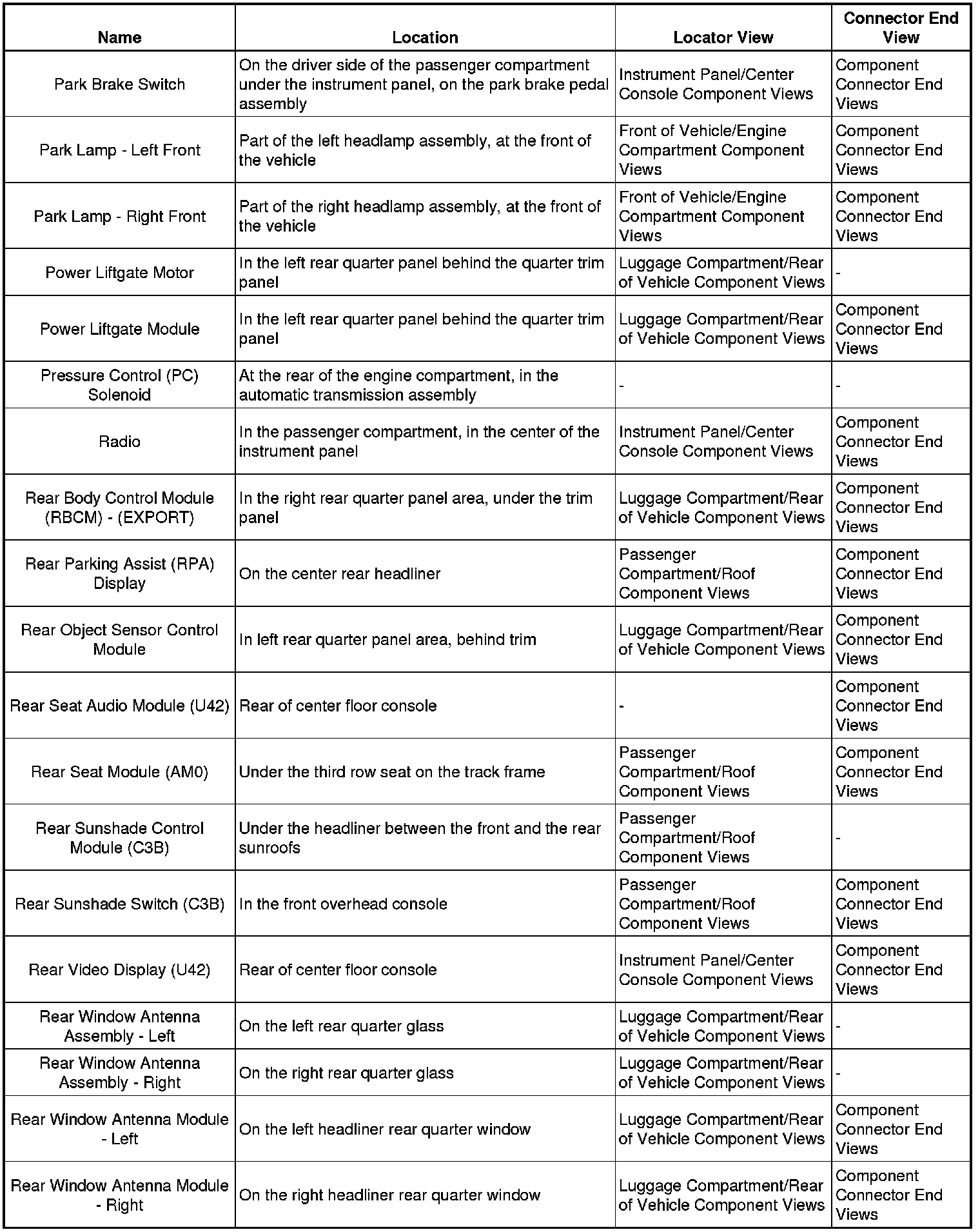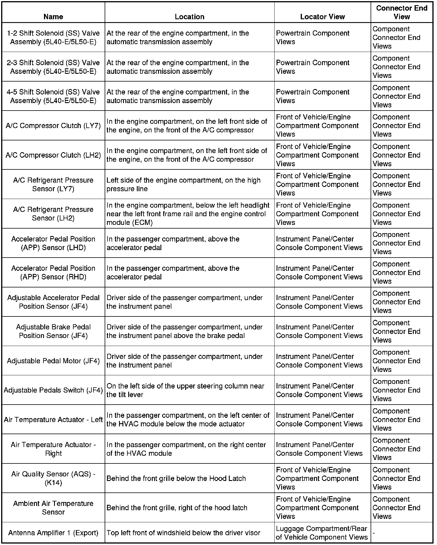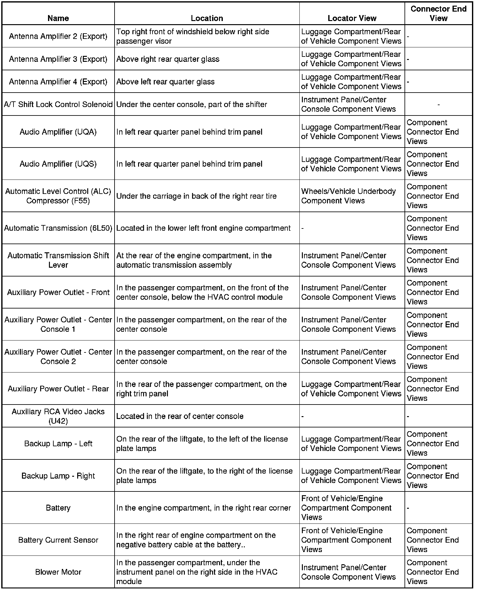 Master Electrical Component ListA/C - Ant: